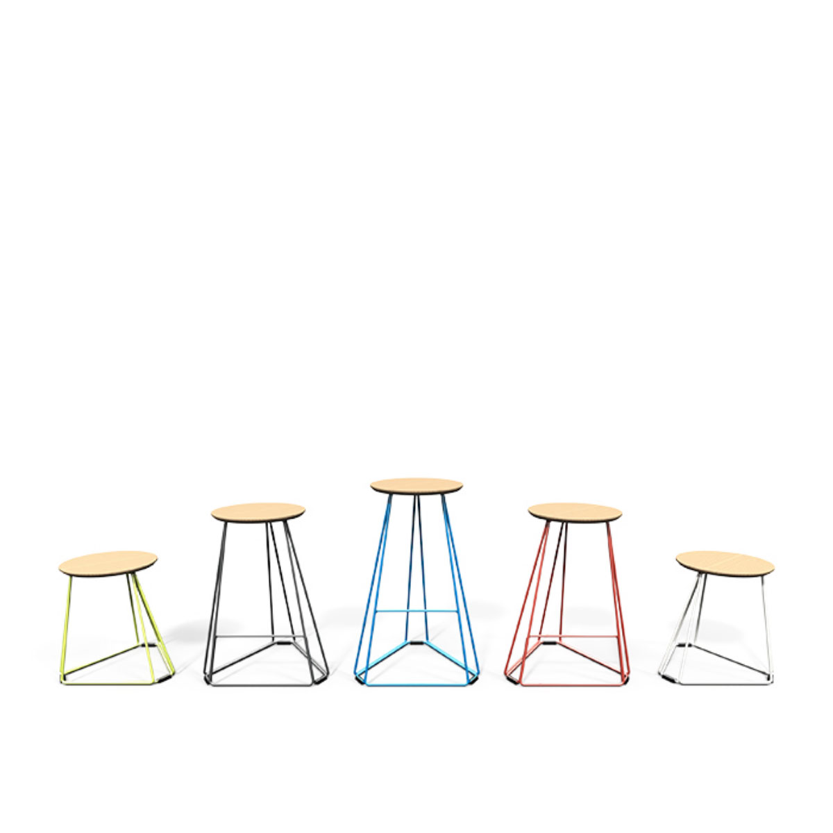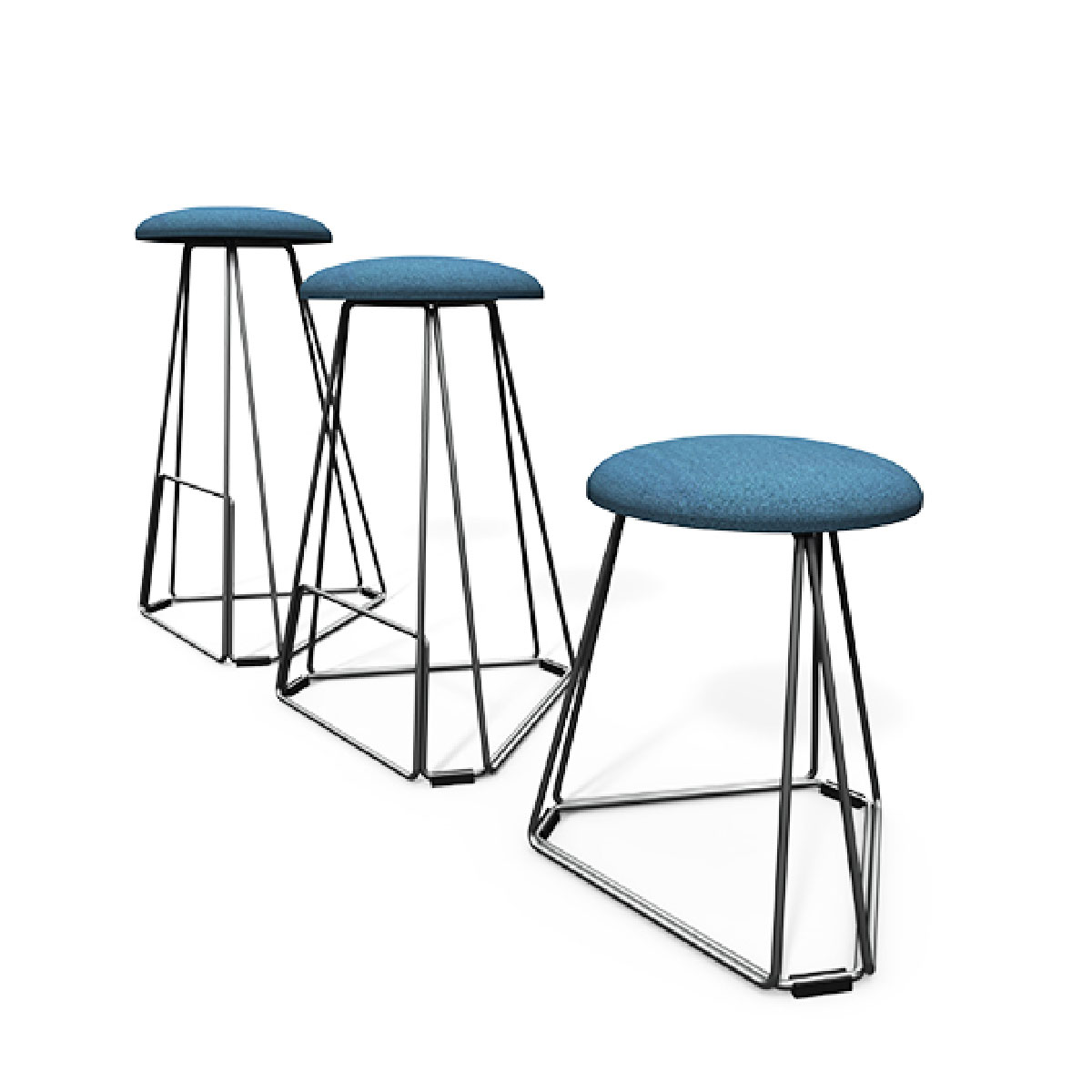 This Contorto family features a striking silhouette with its modern design and three heights across the stools and tables, enabling it to be used easily in any office, bar, hotel, home or school setting, truly endless possibilities.
