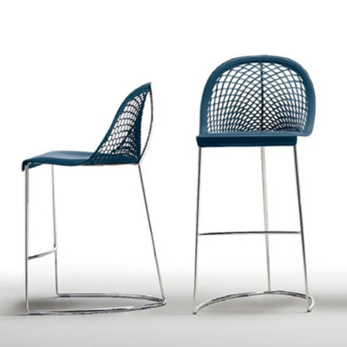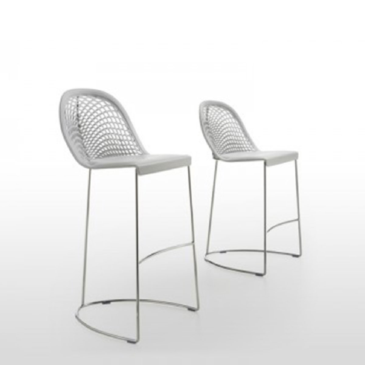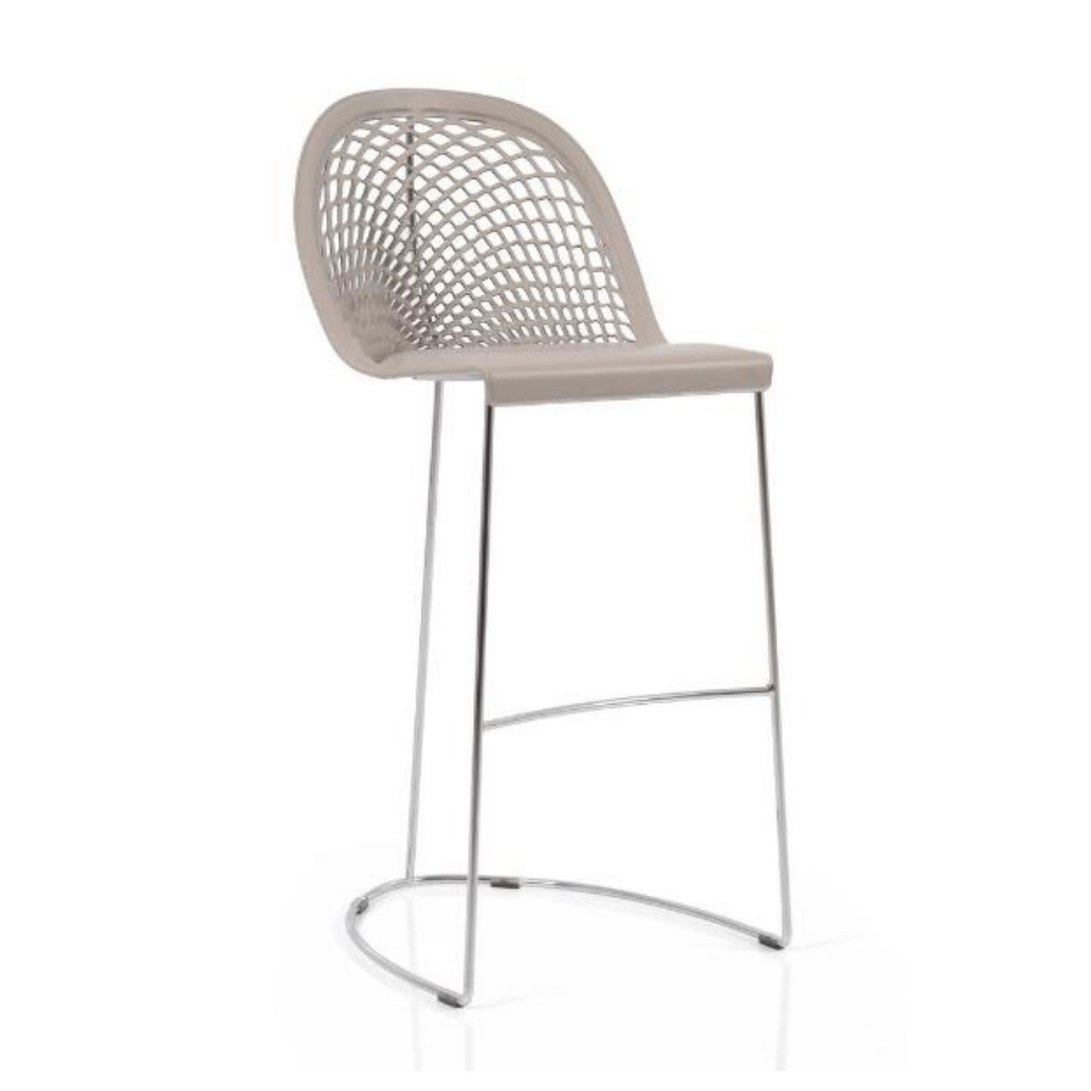 This elegant Italian designed Stool features hide leather body with a lattice cut-work backrest. The seat and backrest are upholstered in hide leather that is available in a choice of sophisticated neutral tones and a selection of contemporary colours.