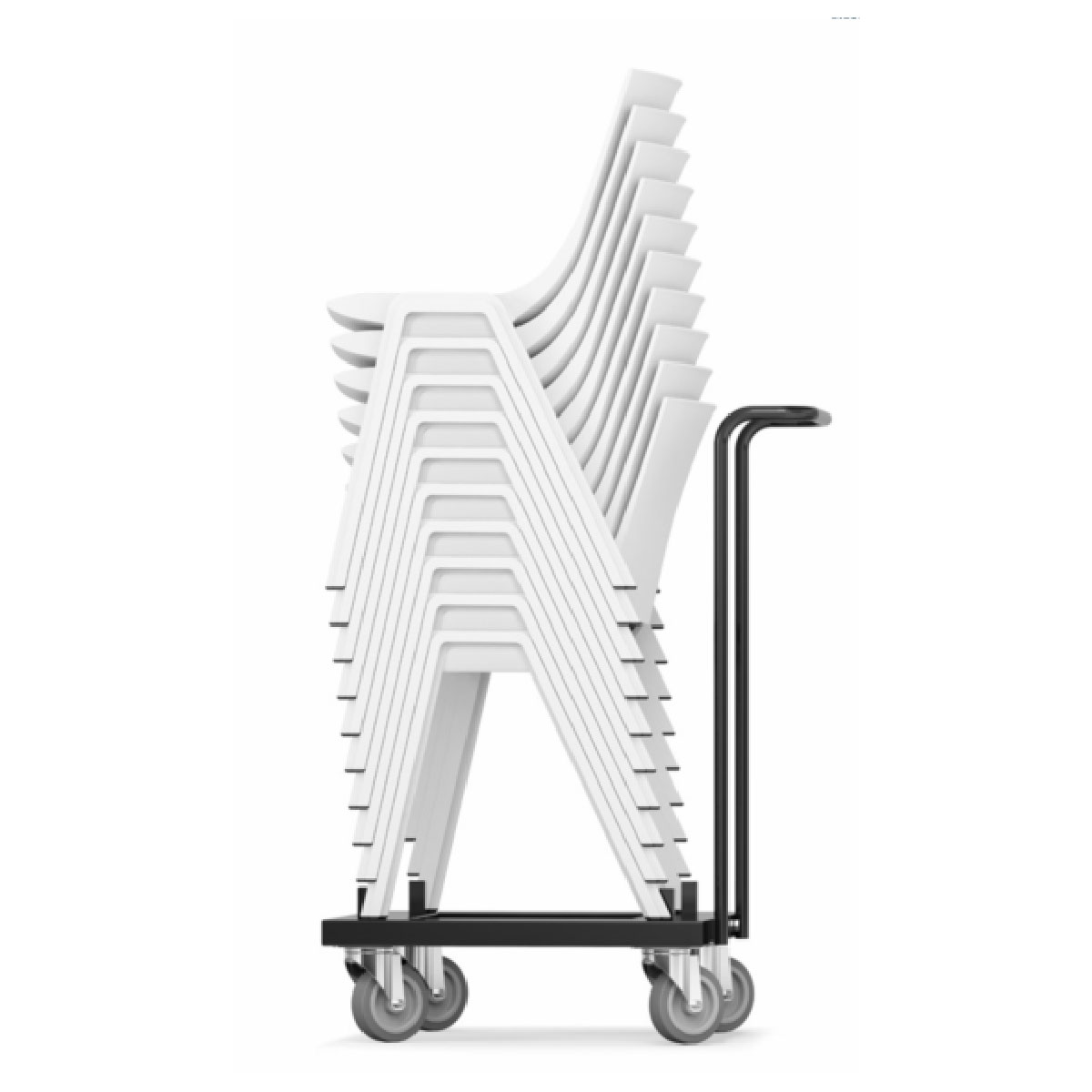 Monolink is available in a plastic seat and another version has an upholstered seat. The chair is available in three colours. One of Monolink’s attractive characteristics is the way it can be quickly set-up and stored. This is why Casala developed a clever transport method which is available as an accessory.