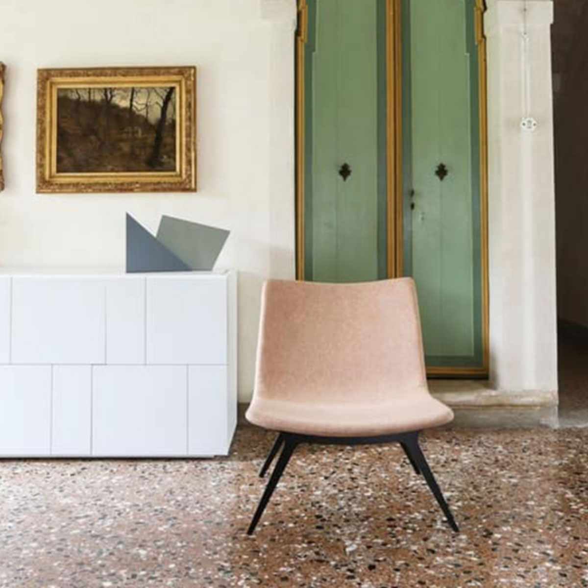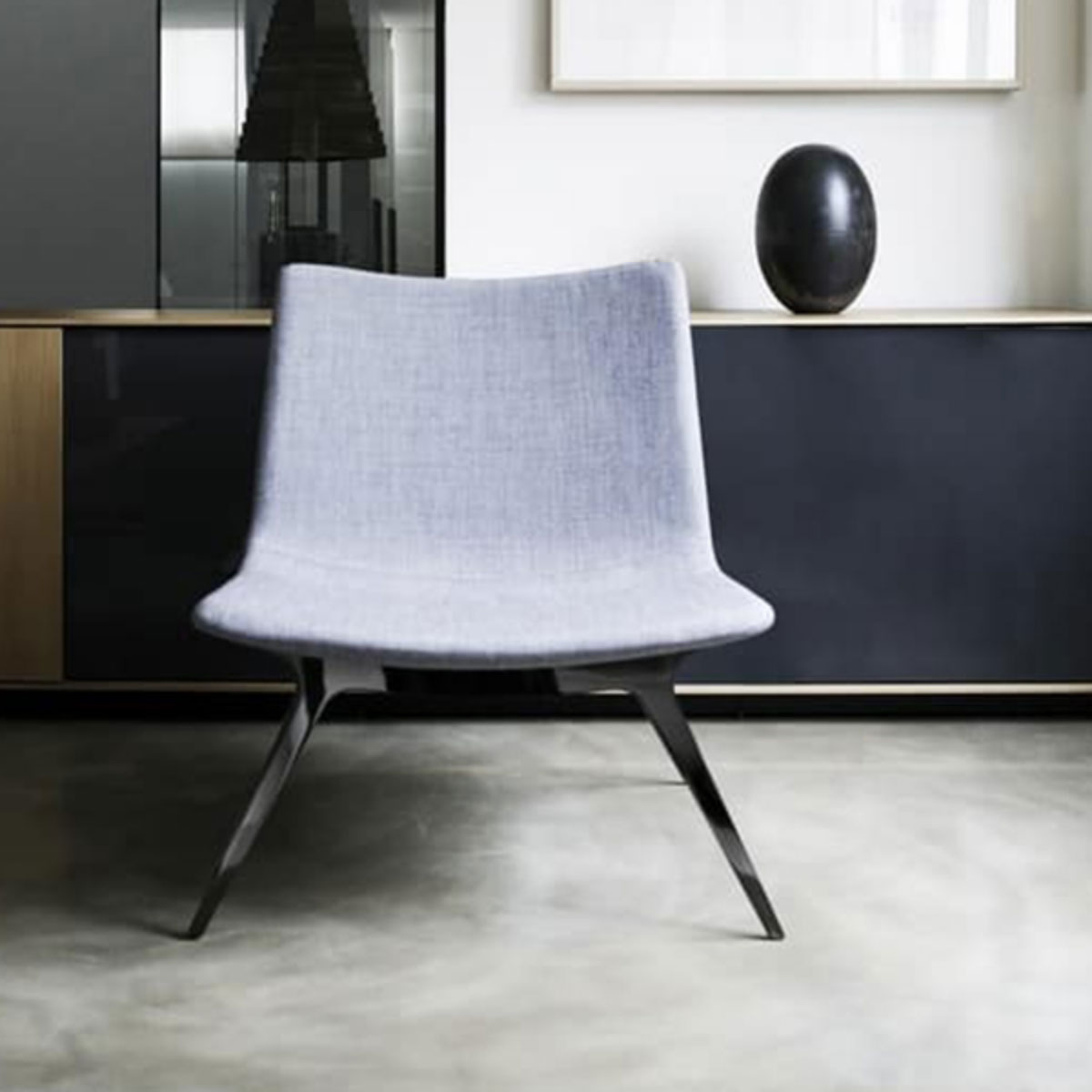 Sotai is designed with a thin laser cut metal frame and enriched by an upholstered soft fabric seat. This lounge chair is the perfect solo piece or as an accessory in any beautiful interior space.