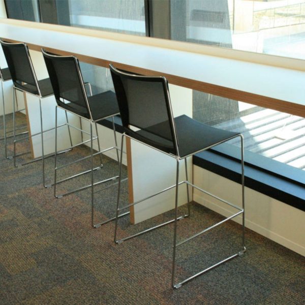 Splash Stool is available with both plastic and mesh back options, as well as optional upholstered seat padding.